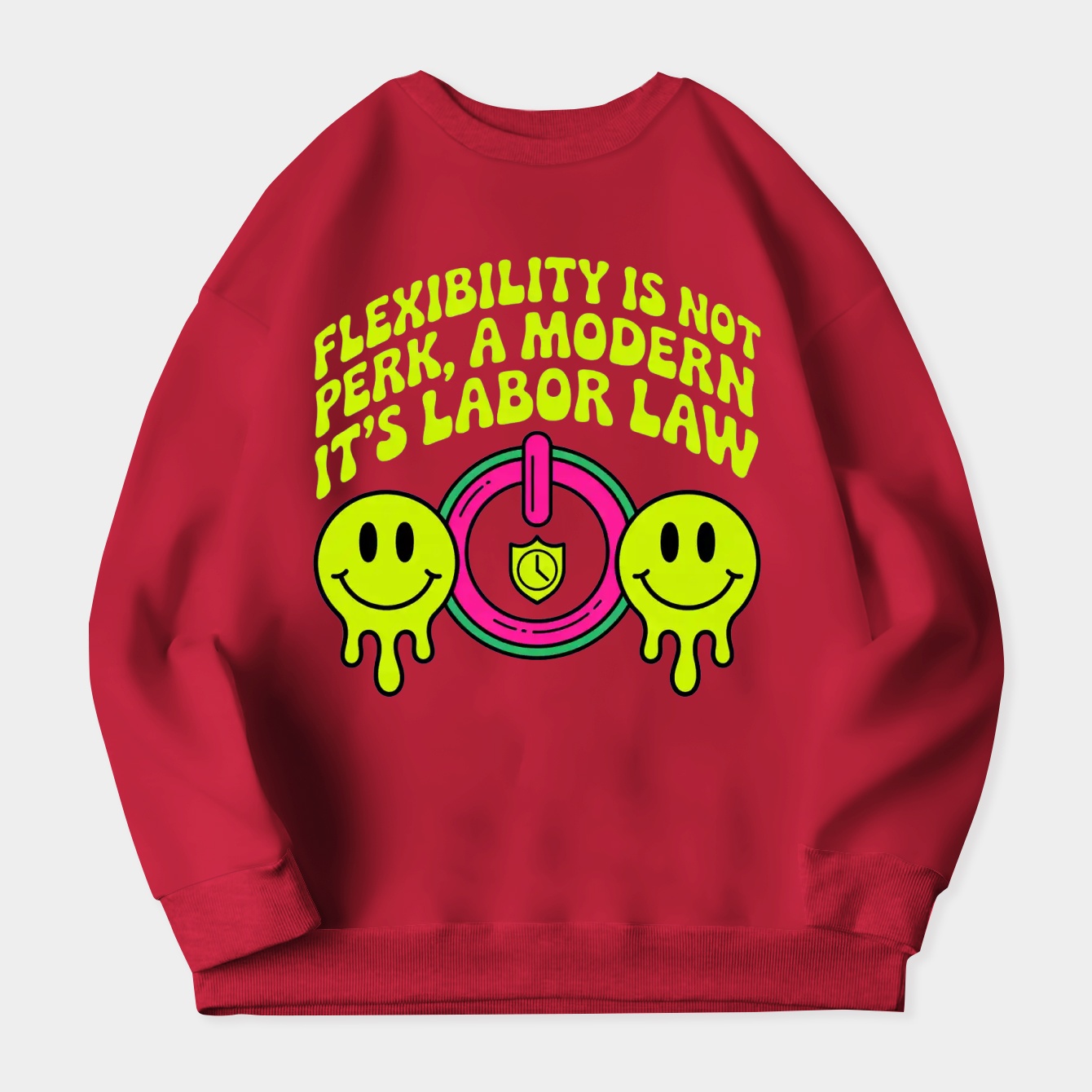 Flexible labor laws are about work that bends, not breaks you. From Prague to New York, people want hybrid schedules, part-time options, and gig freedom without losing basic protections. I built this series to celebrate that sweet spot where remote work, tracked hours, and fair pay actually coexist. These designs poke fun at hustle culture while backing workers’ rights. Throw on this Clothing, spark a conversation, and quietly remind your boss that flexibility should go both ways.