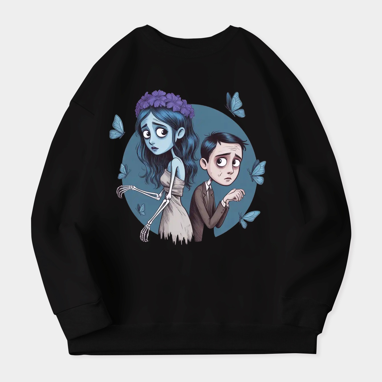 Corpse Bride is a gothic fairytale rooted in a 17th-century Russian-Jewish folktale, later popularized by Tim Burton’s iconic film. The story blends dark romance, tragic history, and a touch of humor, making it a cult favorite for those who love the macabre with heart. Its origins reflect real-life struggles and resilience, while its visual style and quirky characters have made it a pop culture staple. I’m inspired by Corpse Bride’s unique mix of melancholy and whimsy, and I want to bring that haunting beauty to your Women's Plus Size Sweatshirt collection. Shop now and let your style tell a story!